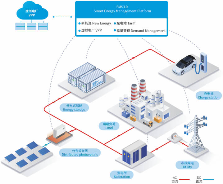 Acrel EMS 3.0 can dispatch and manage power, grid, loads, energy storage and charging.